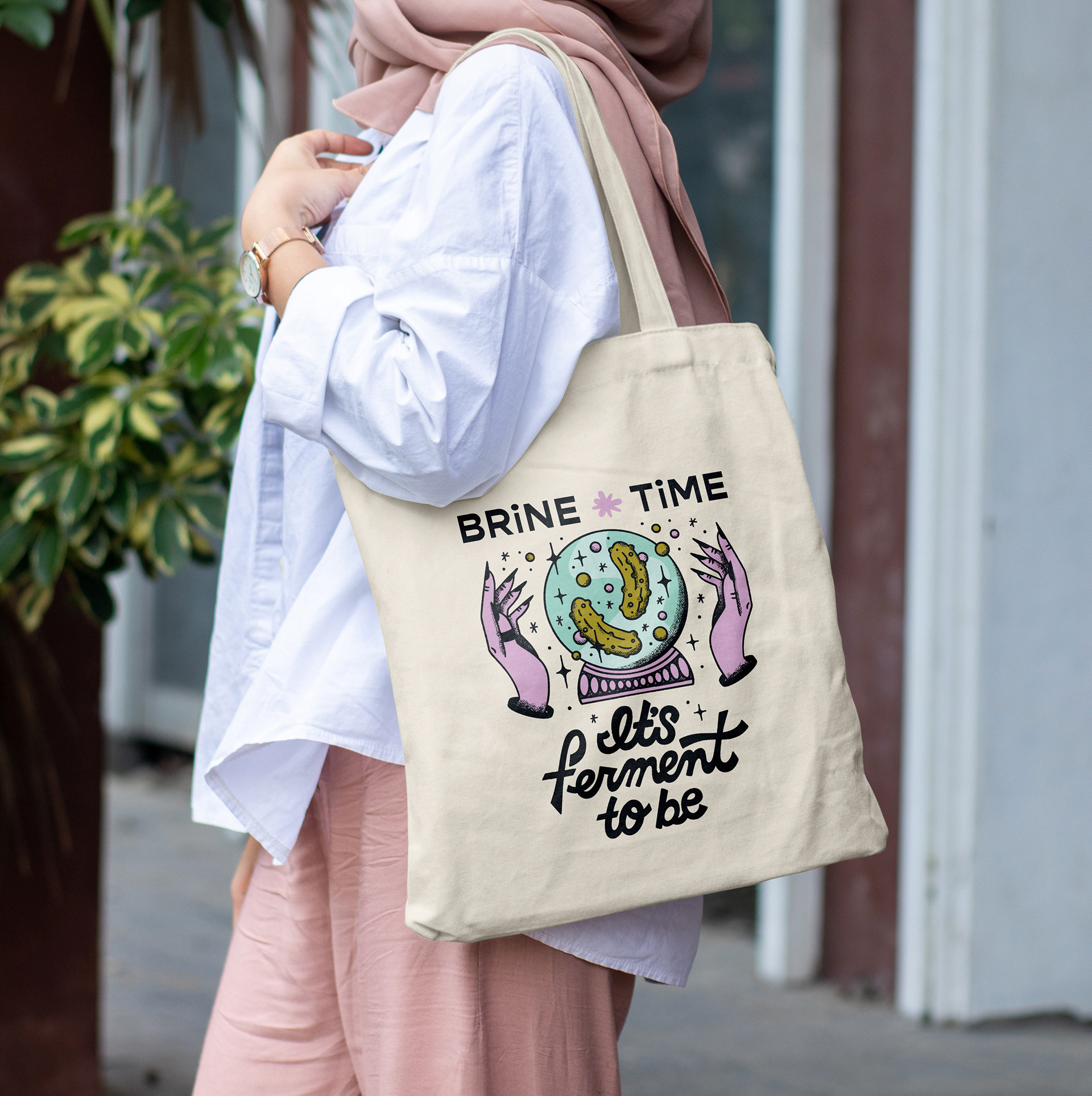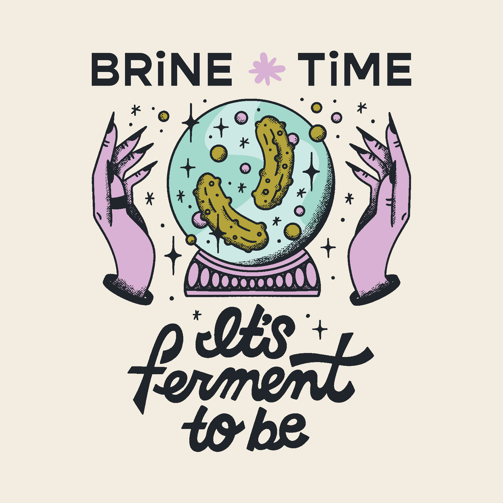 I created a custom illustration for Brine Time, a fermentation-focused pickle company known for its bold flavors and playful retro brand personality. The artwork was designed for merchandise, intended to help build brand awareness at farmers markets and future retail spaces.