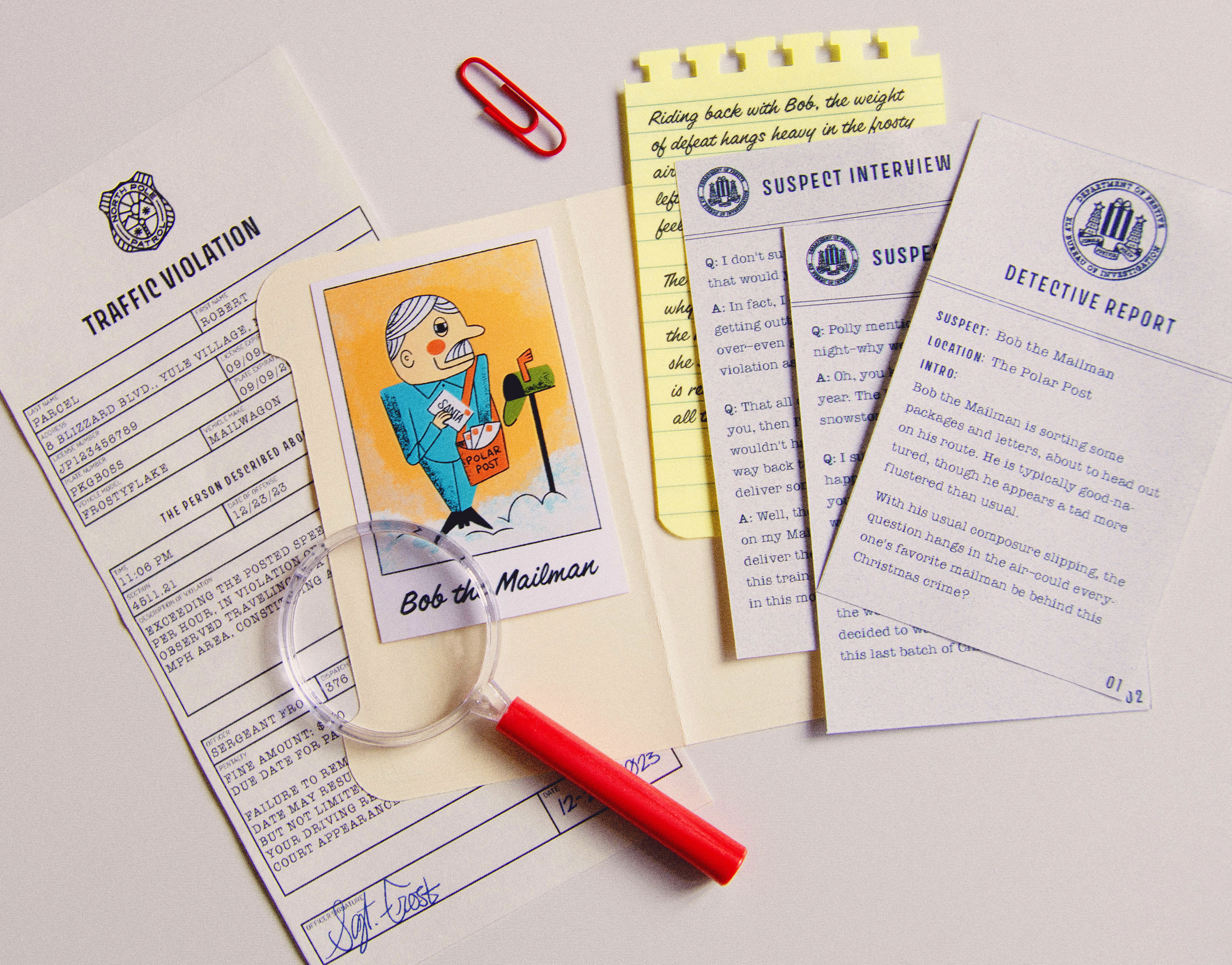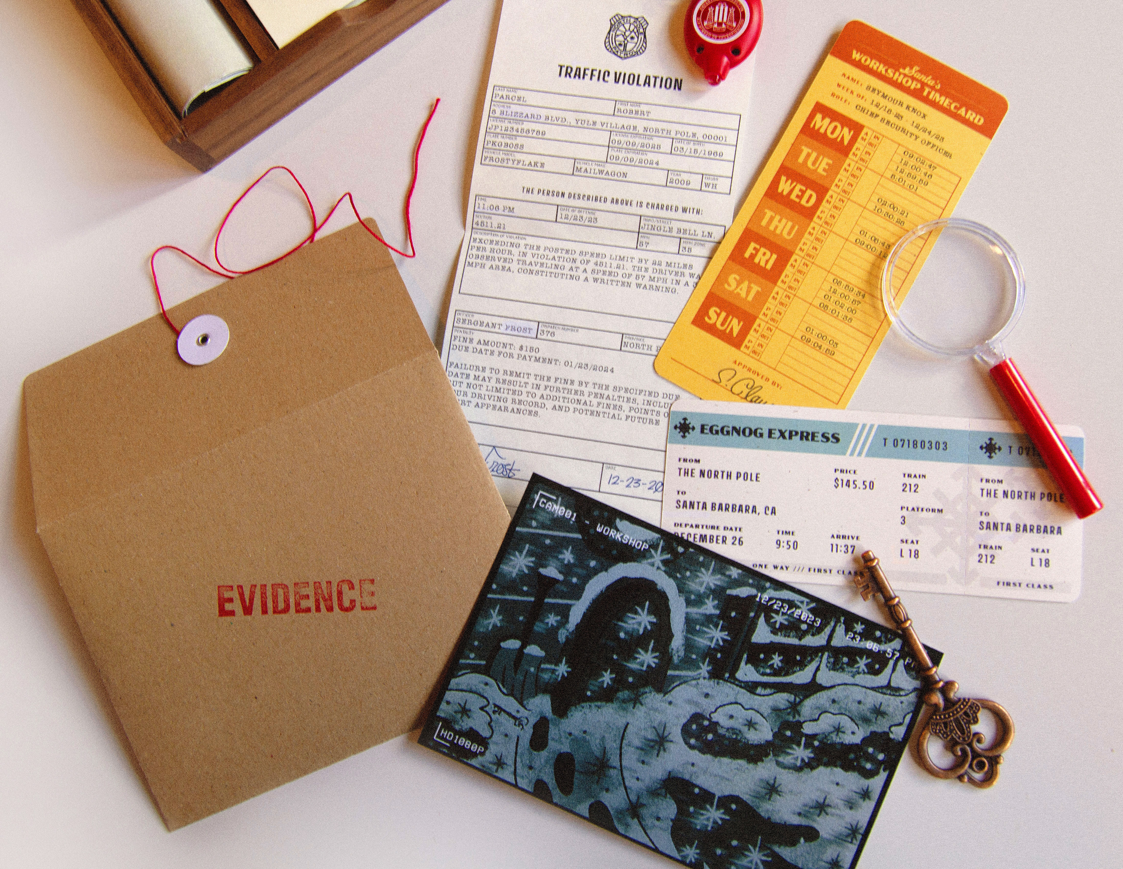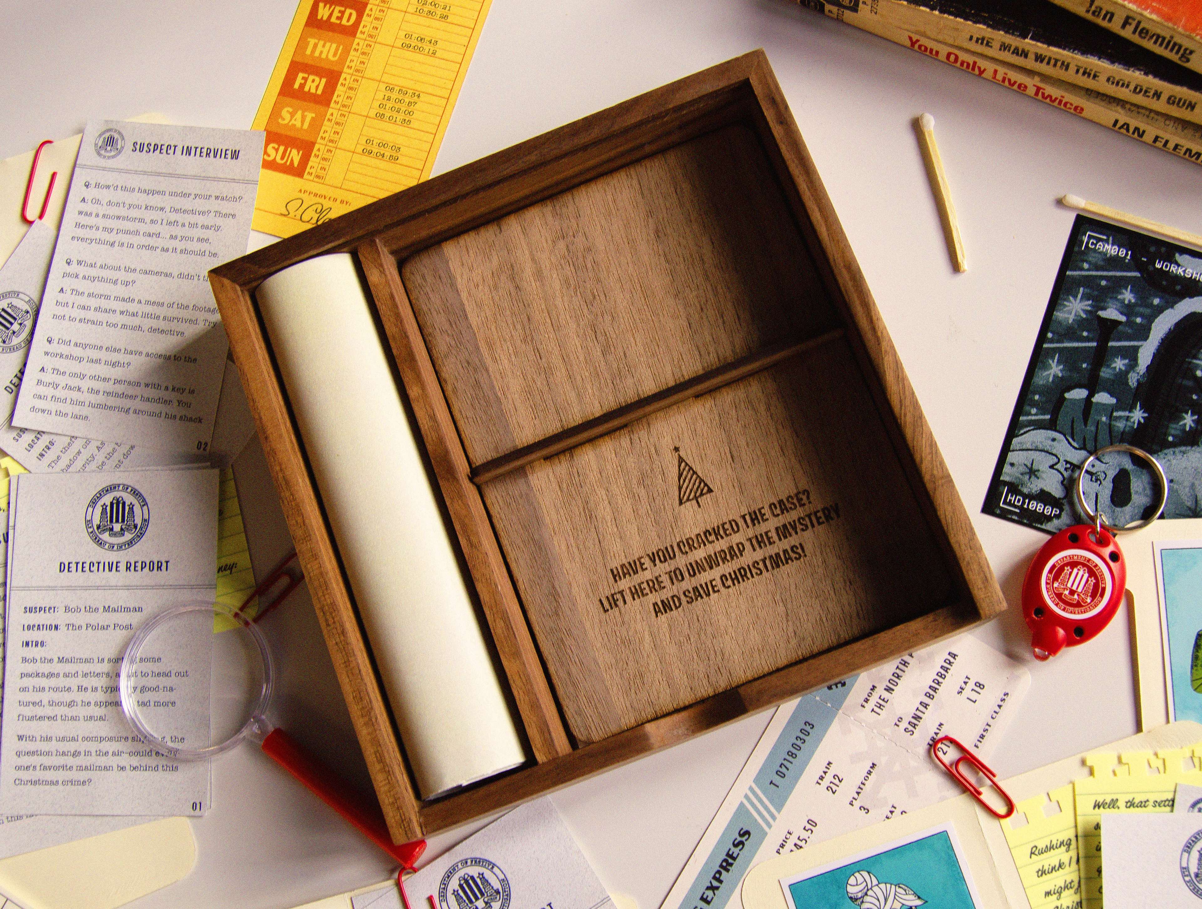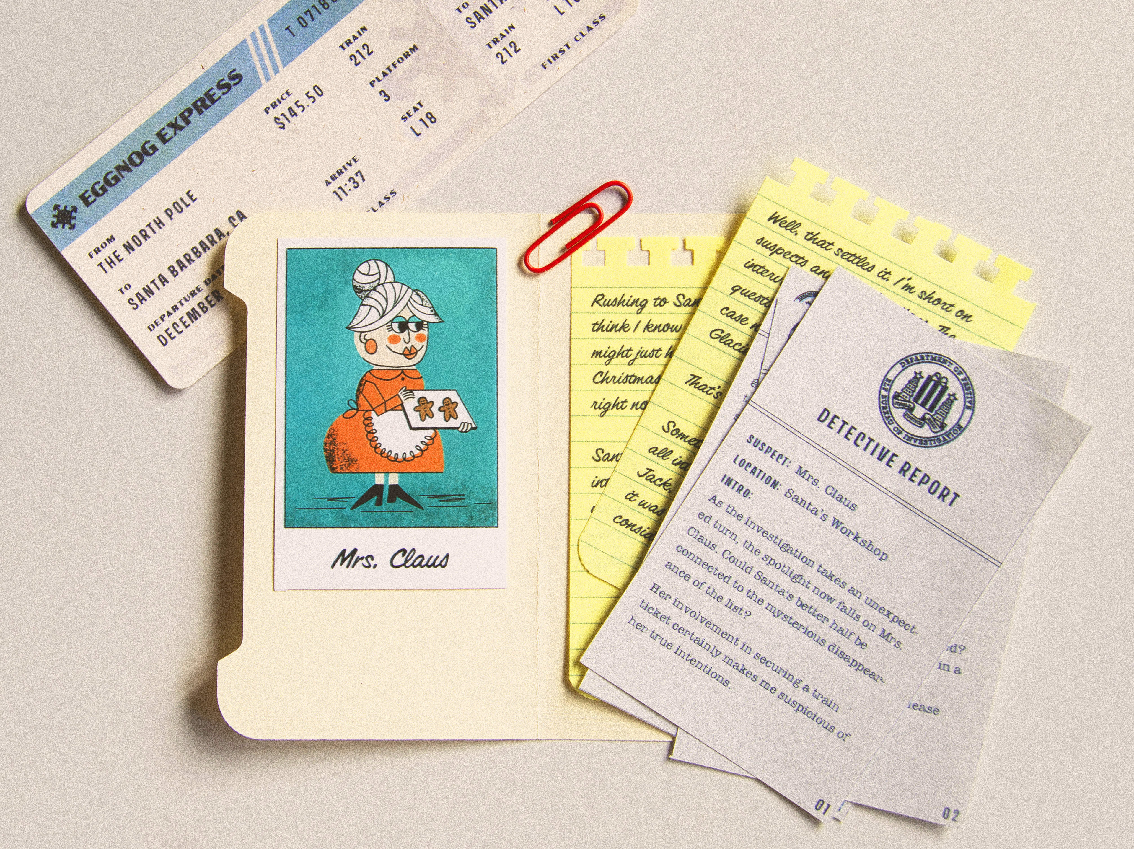 Each year at Jetpack, we celebrate the holidays by sending our clients and colleagues custom Christmas gifts designed and developed in-house. For 2023, we created the Merry Mayhem Christmas Mystery Game. Recipients would follow clues, analyze evidence, and interview suspects to discover who stole Santa's magic list.