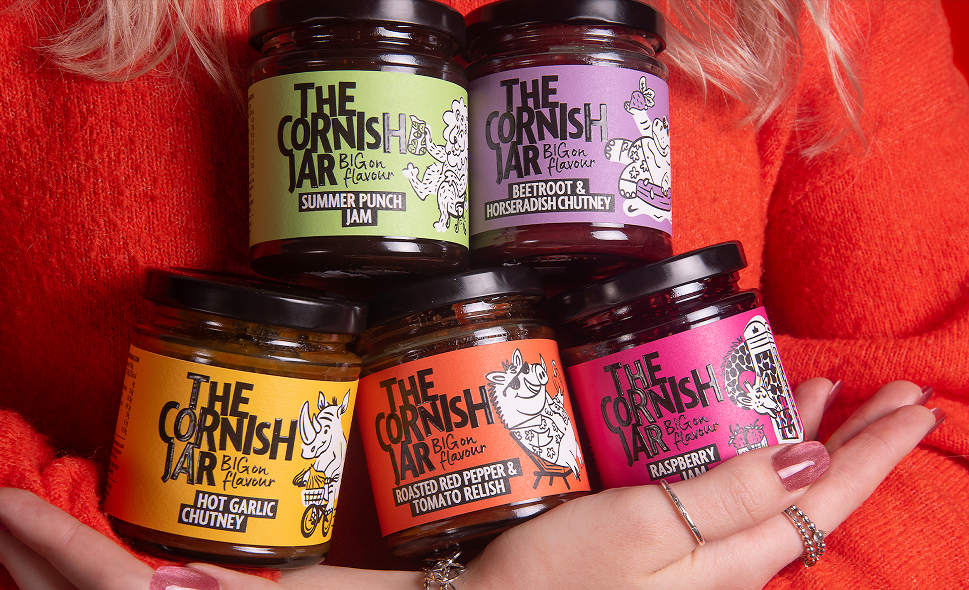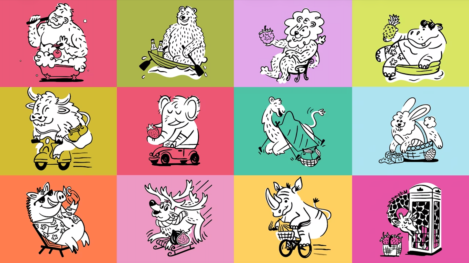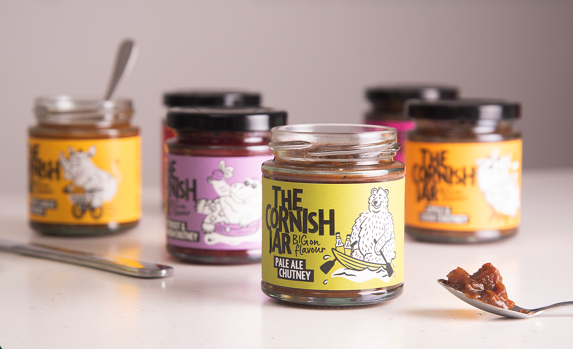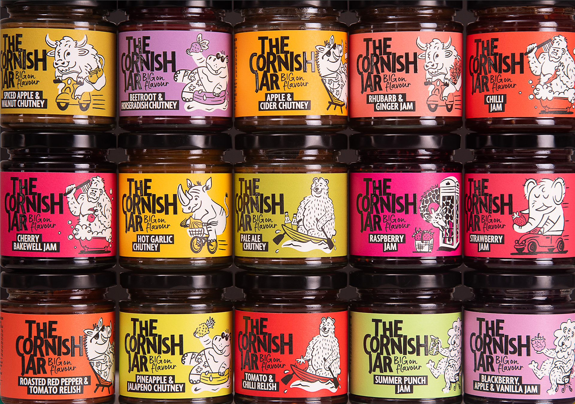 I worked with Buddy Creative to develop a series of 12 playful animal illustrations for The Cornish Jar. The goal was to create a bold, colorful visual world filled with larger-than-life characters squeezing themselves into unexpected spaces, from small kiddie pools to telephone boxes, mirroring the idea of big flavors packed into every jar. The illustrations help bring personality and humor to the brand, reinforcing that food can be just as fun as it is flavorful.